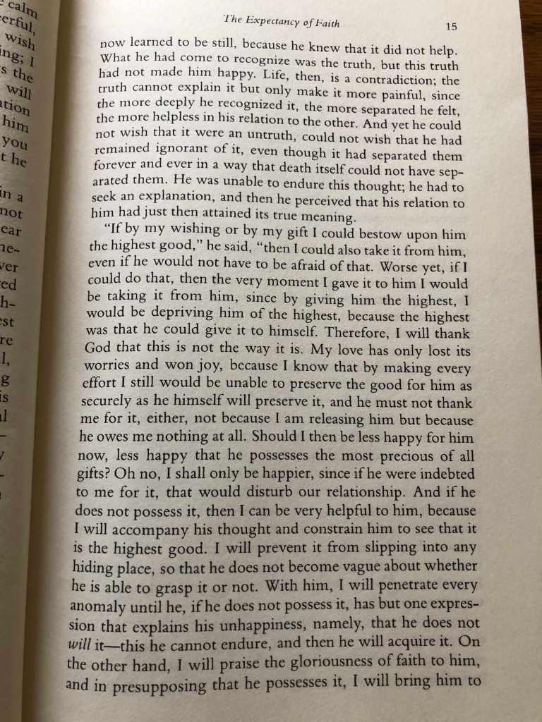 The text is from 1843, the very beginning of Kierkegaard’s published works, a good starting point to encounter his thinking about faith. This starting point will lay the groundwork to make future insights into how Kierkegaard’s writing about faith evolved over the years.